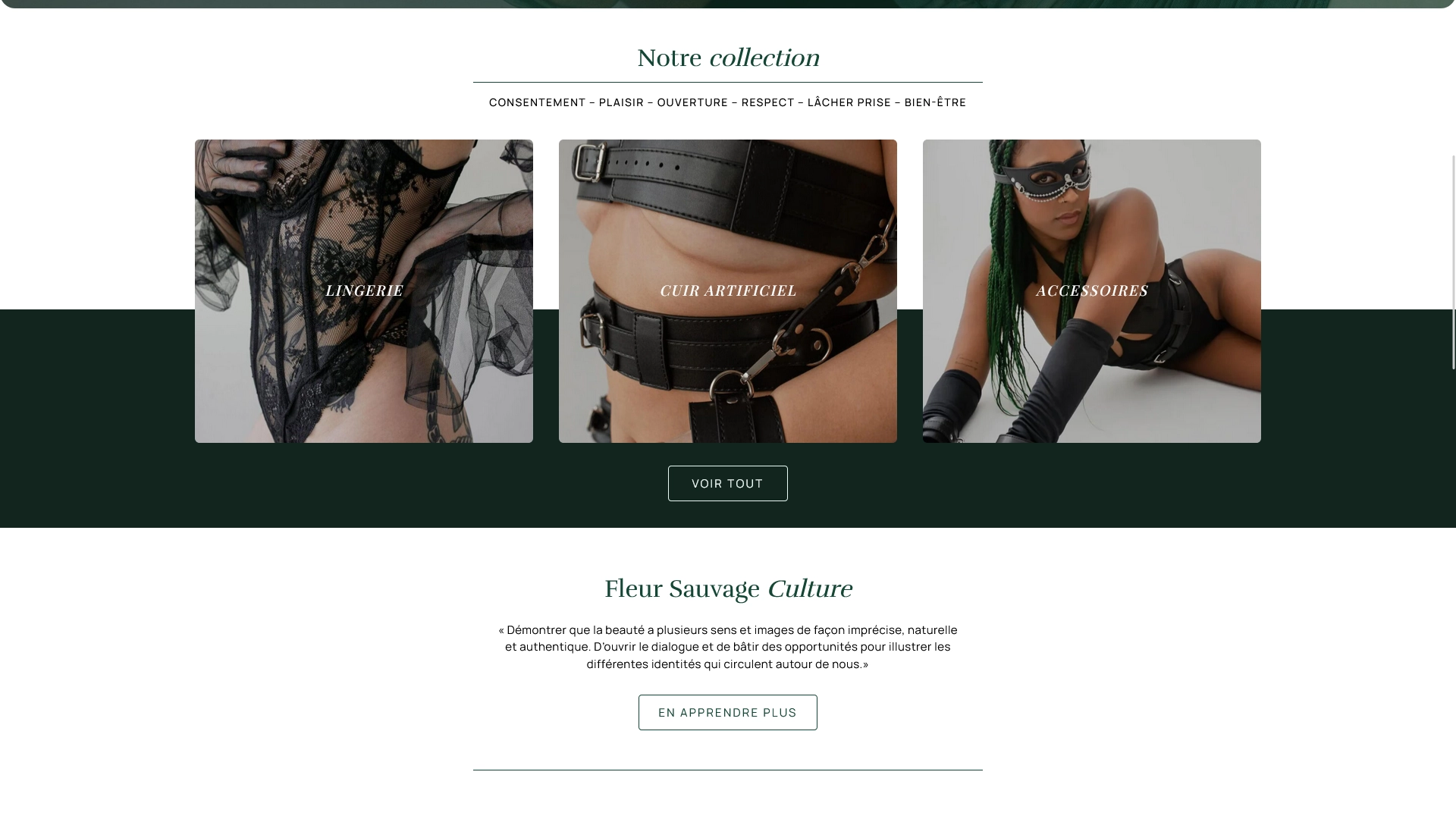 Fleur Sauvage Lingerie est une boutique québécoise dédiée à l’exploration du corps, du désir et du bien-être sous toutes ses formes. La marque valorise la diversité humaine et offre un espace où chacun peut découvrir sa sensualité de manière libre, respectueuse et assumée.