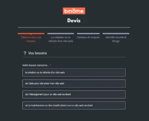 Utilisez le formulaire complet : il vous guidera pas à pas en vous posant les bonnes questions afin d’obtenir automatiquement une estimation précise du coût de votre projet.